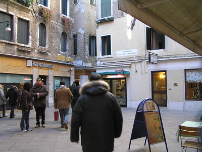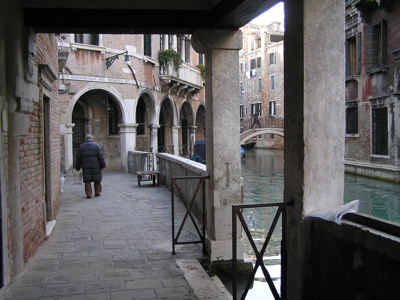retrace our steps to Calle de l'Ufizio de la Seda and go under the sotoportego to Corte