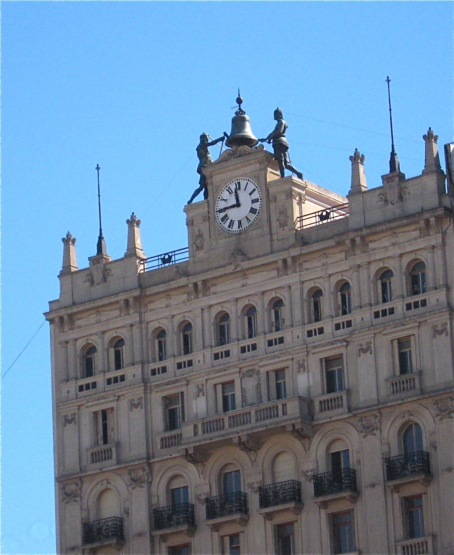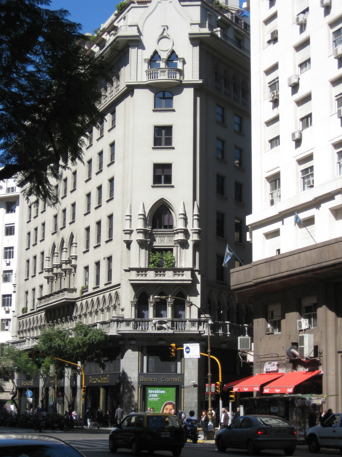 Maipú Street. The lower floor is occupied by a bank. The Lion of