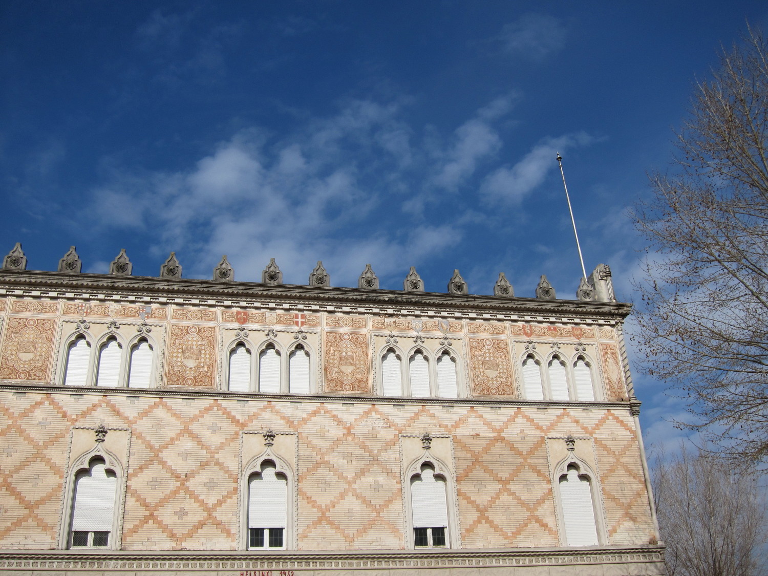 Congress building, stands a reproduction of the Moors atop Torre de l'Orologio in Piazza San