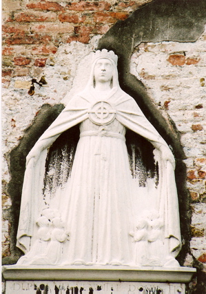 shows Mary wearing a crown and with the emblem of the Scuola de la