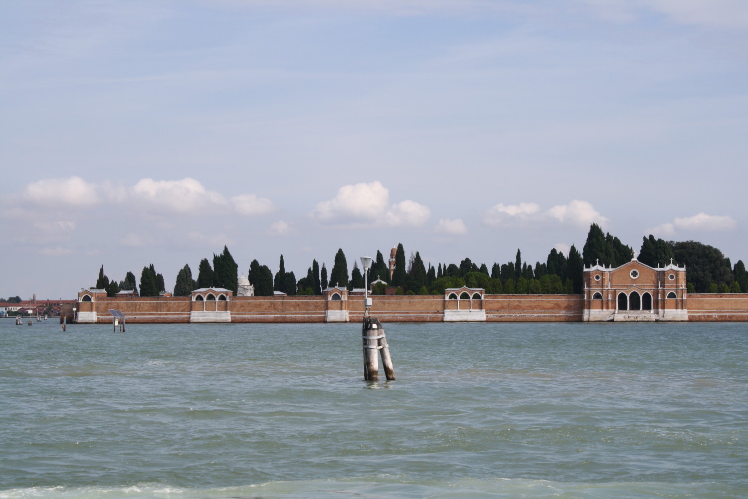 We cross Ponte dei Gesuiti and head towards the church with its Baroque façade. In the interior there are works by Tintoretto, Titian and Palma il Giovane. Perhaps the most astounding feature of the church's interior is the baldacchino over the main altar, with twisted columns à la Saint Peter's in the Vatican, but on a more modest scale. Everywhere carved marble imitates damask drapery so well that you almost have to touch it to find out that it's not real fabric. You can read more about this church (and many others) in the wonderful blog Churches in Venice. As we exit the church, we turn right and walk towards the Fondamente Nove. The view of the north lagoon with the island of San Michele is breathtaking. ![]() |