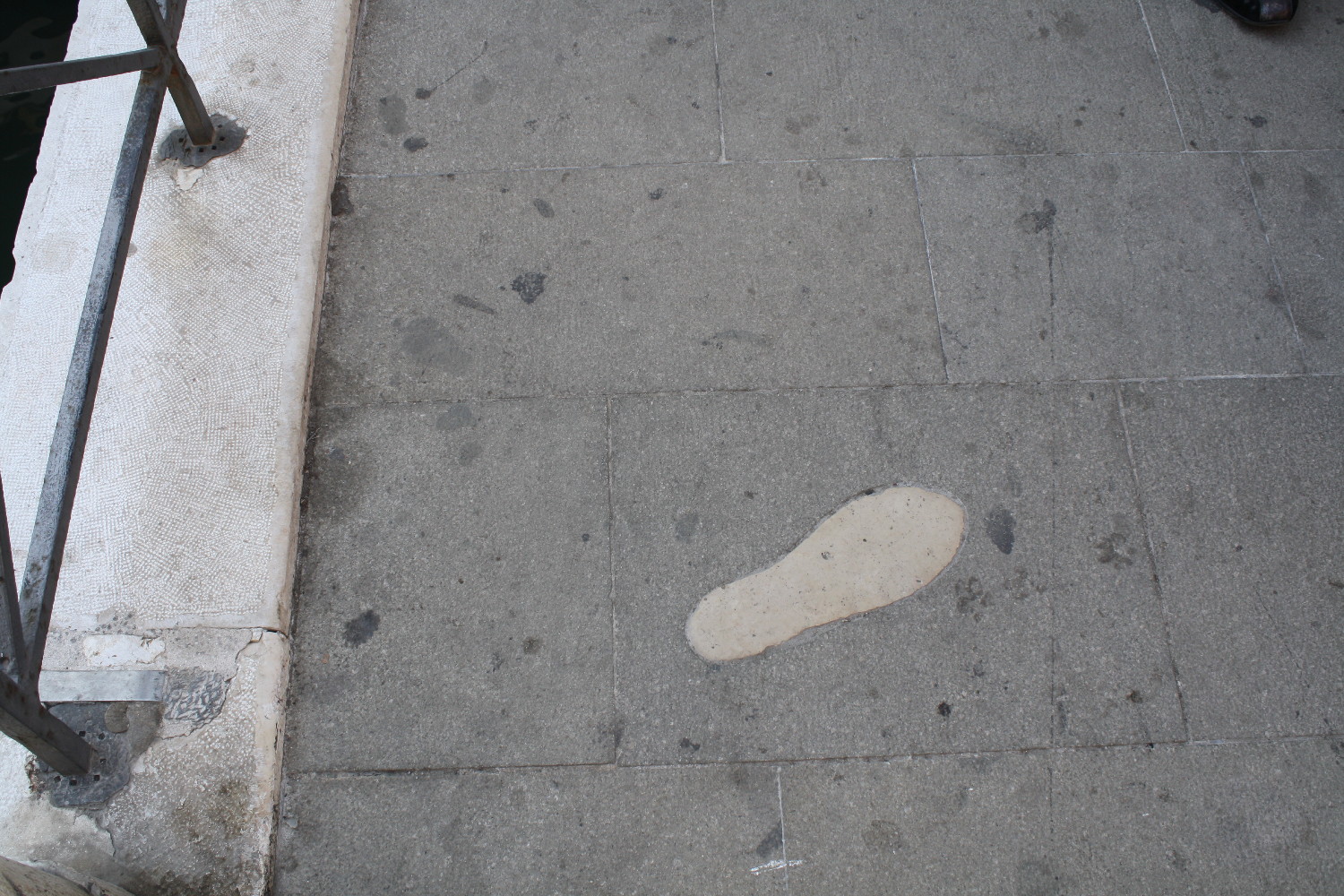 on this bridge. Today, marble footsteps inlaid on the cement remember