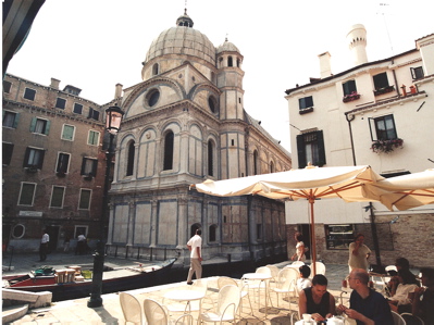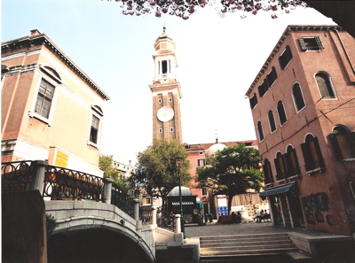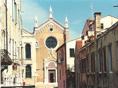 Behind the church is Campiello Piave, a cozy corner of Venice with attractive apartment buildings surrounded by gardens. The view of the church's bell tower with its characteristic onion-shape top is superb. A few steps away is the Madonna de l'Orto vaporetto stop and an incredible view of the lagoon and the island of Murano. |