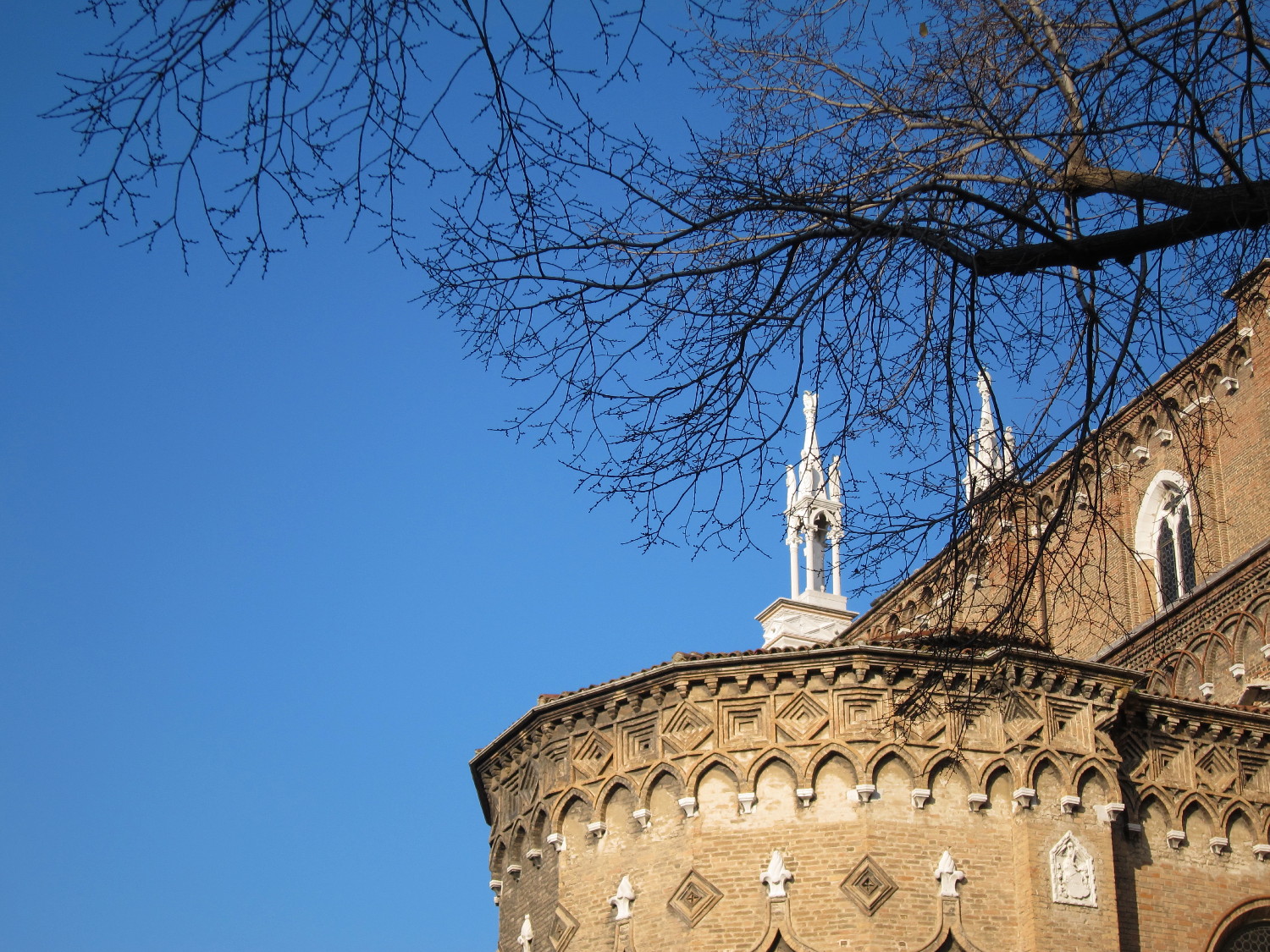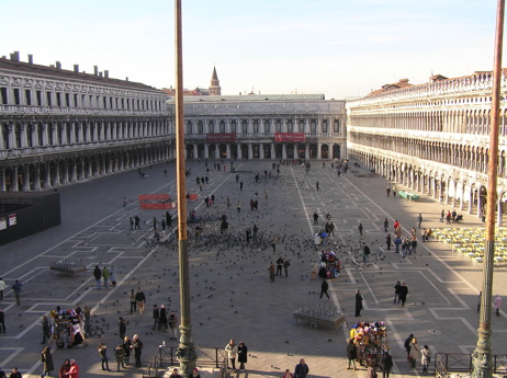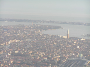 If you were standing in Piazza San Marco, the heart of Venice, on a clear day, you would see -amid the hundreds of pigeons and tourists- the massive bell tower, the basilica of San Marco, the Doge's Palace, the honeycomb-like presence of the Procuratie enclosing the Piazza, and a glorious opening, the only opening, to the water. If you didn't know Venice you couldn't guess that this city was surrounded by and infused in water. If you were to go a hundred meters above the paving stones of the Piazza, say by taking the elevator to the top of the campanile, you would realize that this most peculiar city was completely surrounded by water but you would not see any sign of the myriad of canals that crisscross her. All you would see was a pleated mantle of uniform terracotta tiles, punctuated by the occasional bell tower, floating in the green waters of the lagoon. If you were to go five hundred meters above the paving stones, you would see what Jacopo de' Barbari could have only imagined half a millennium ago, but managed to render with astonishing precision on paper: a city shaped like a fish, made of a hundred pieces glued together with just water. This most impossible, most singular, most miraculous city is Venice. |