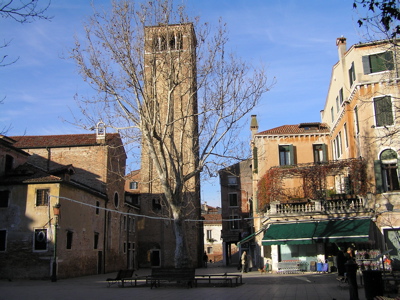 A few words about Venetian lexicon are in order. A regular Venetian street, usually very narrow, is called a calle, a very Venetian term for the Italian strada or via. The terms strada, via and viale in Venice are reserved for rather recent streets, usually wide by Venetian standards, opened during the Austrian occupation or after the unification with the rest of Italy. A fondamenta is a street on the side of a canal; so is a riva. A sottoportico or sotoportego is a street or short section of a street under a building. A corte is a short street usually leading to a dead end. A ramo is a branch of a more important street. A salizzada or salizada is a street that was paved in times when others were not. A piscina is a street that used to be a pond. Ruga refers to some of the oldest streets opened in Venice, they usually have shops. A rio terrà or rio terà is a filled-in canal. A lista is a street where an embassy used to be. A campo is a square, usually paved despite its name (campo means field) and near a church. A campiello is a small campo. Piazza, well...there is only one piazza in Venice: Piazza San Marco. There are only four canals in Venice: Canal Grande, Canal de la Giudecca, Canal de Cannaregio, and Canal de San Piero. All the other watercourses are called rio or riello. A traghetto is a gondola ferry, a traditional and efficient way to cross the Grand Canal. Taking the traghetto will give you a taste for a gondola ride at a fraction of the cost and you will get to do it with true Venetians; the only con (or added bonus depending on your point of view) is that you must do it standing up. |