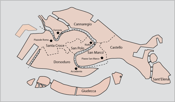 are five cardinal points in Venice: Ferrovia, Piazzale Roma, Piazza San