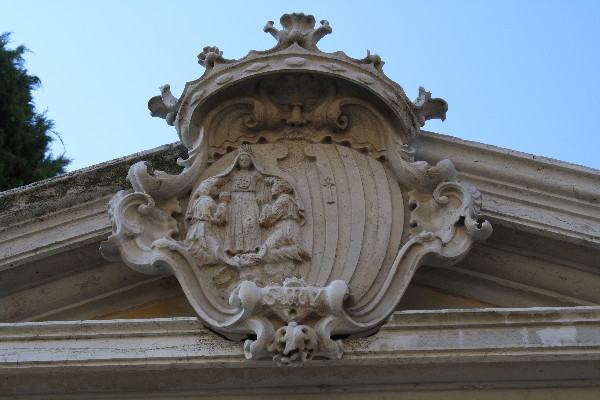 in Dorsoduro. Two worshipers are protected under Mary's mantle. A crown