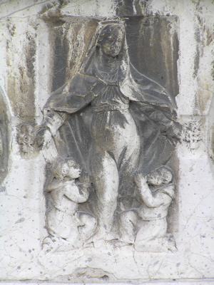 antependium shows a beautiful relief of the Virgin protecting two