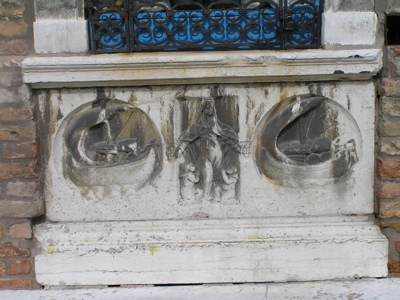 Misericordia. The tabernacle is on the brick wall of the fondamenta.