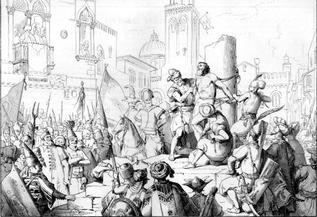 This city on the east coast of the island of Cyprus has the sad honor of being the place where Marcantonio Bragadin, Captain of the Kingdom of Cyprus, was flayed alive in August 1571, after surrendering to the Pasha Lala Mustafa following the fall of the city to the Turks. It was supposed to be a dignified surrender, but in an inexplicable change of course, the Pasha turned it into a gruesome spectacle. Bragadin's nose and ears were cut off in front of the crowd and then he was thrown into a cell for a couple of weeks. Tied to a pole, he was flayed alive. It's been reported that he died when they reached his stomach. His skin was stuffed with straw and displayed around the city. It was later taken to Constantinople by the Pasha himself; it was stolen from Constantinople by a Venetian merchant or slave (the sources do not agree) named Gerolamo Polidori and transported to Venice. It is kept in the church of Santi Giovanni e Paolo. ![]() Martyrdom of Marcantonio Bragadin, by Giuseppe Lorenzo Gatteri (1852) Haifa