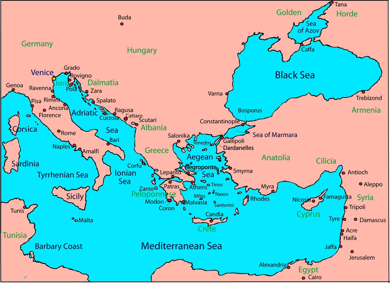Alexandria, Corfu, Cyprus, Tana, Acre, Malvasia, just to mention a few.