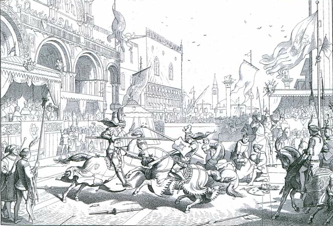 Crown of the Stato da Mar, the island of Crete, also known to the Venetians as Ducato di Candia after the name of its most important city, was purchased by Venice in 1205, at the end of the Fourth Crusade, from the crusader Boniface of Montferrat. It remained under Venice's control for more than four hundred years. It was surrendered to the Turks in 1669, after twenty two years of siege, by the Captain General Francesco Morosini. Like Venice proper, the island was divided into six sestieri named after the sestieri of Venice: San Marco, Santa Croce, Castello, San Polo, Dorsoduro and Santi Apostoli. There was even the island of Spinalonga (old name of the Giudecca island in Venice) off the northern coast of Crete. The city of Candia (today Heraklion) remained an autonomous district. Throughout the centuries of Venetian dominion there were many revolts for independence, some even led by the descendants of the Venetian nobility settled on the island for generations. Among those uprisings perhaps the most memorable was the Revolt of Saint Titus (1363-1364) led by the Cretan branches of the Gradenigo and the Venier families over an increase in taxes imposed by Venice. After several months of failed negotiations, the Venetians finally suppressed the revolt by military action. The rebel leaders were executed and Venice celebrated the recovery of its most prized possession with jousts and games in Piazza San Marco. After the fall of Constantinople to the Turks in 1453, many Greeks emigrated to Candia where they established a rich colony of scholars and artists. The painter Doménikos Theotokópoulos, known as Il Greco, was born in Crete during the Venetian rule, in 1541. He was trained on the island by the masters of the Post-Byzantine school before traveling to Venice where he lived for a couple of years and where he enriched his style under the influence of the Venetian Renaissance. At the age of 29 he moved to Rome and a few years later to Toledo, Spain, where he worked and lived until his death in 1614. ![]() Relief of Candia, façade of the church of Santa Maria del Giglio, San Marco, Venice ![]() Joust in Piazza San Marco Celebrating the Recovery of Candia, by Giuseppe Lorenzo Gatteri (1852) ![]() Island of Crete with the six sestieri and the district of Candia Curzola